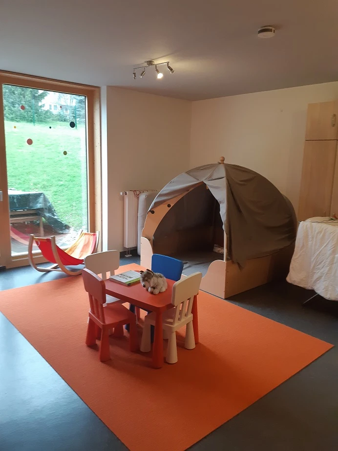 - Schutzraum nach akuter Krise mit der Möglichkeit der Aufnahme von zwei Elternteilen